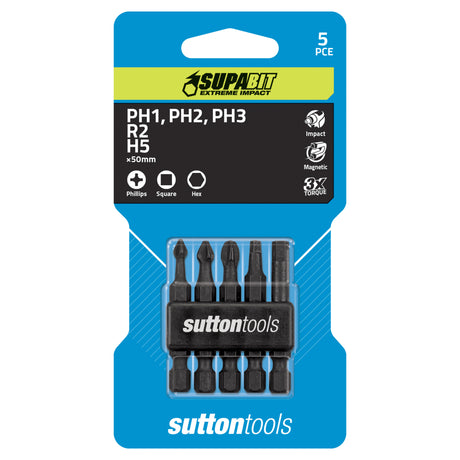 Screwdriver Bit 5 Piece Set – Impact PH1, PH2, PH3, R2, H5 Supabit