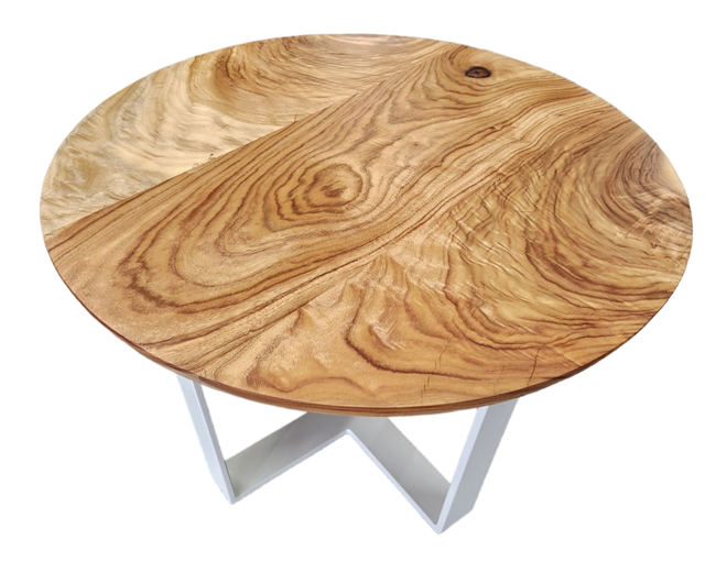 This piece has been designed & handcrafted in Loganholme, Queensland, by Hammer Roo's craftsman. It features a white powdercoated steel base that complements the sleek 650mm round top.
