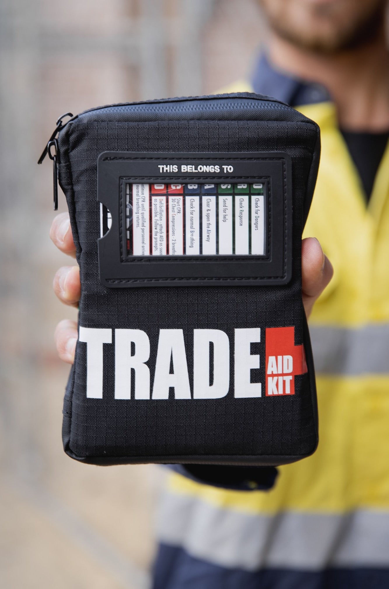 - Your first-aid supplies are specific to tradies, they are labeled neatly and arranged so that they zip away and everything is secured in place within the kit (the kit can now get thrown around).