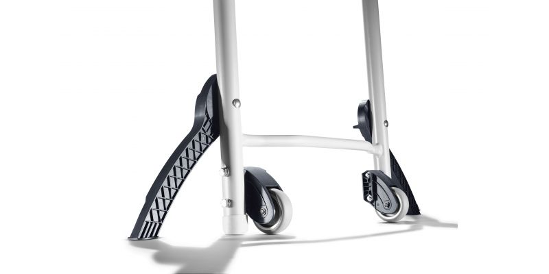 The integrated transport rollers enable the machine to be moved easily. The tilt protection with collapsible support lends the saw additional stability.