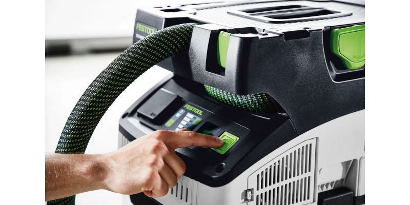 Festool dust extractors are fitted with a circuit breaker for safety when a connected load of 1200 watts is exceeded.