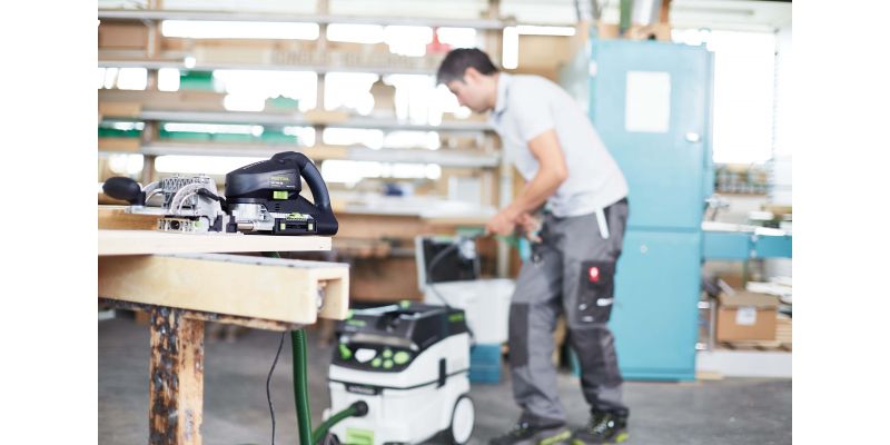 Larger quantities of chips are created when working with the DOMINO DF 500 jointers. To improve chip removal out of the routed hole during routing, as well as to protect your health, we recommend always working with a dust extraction system.