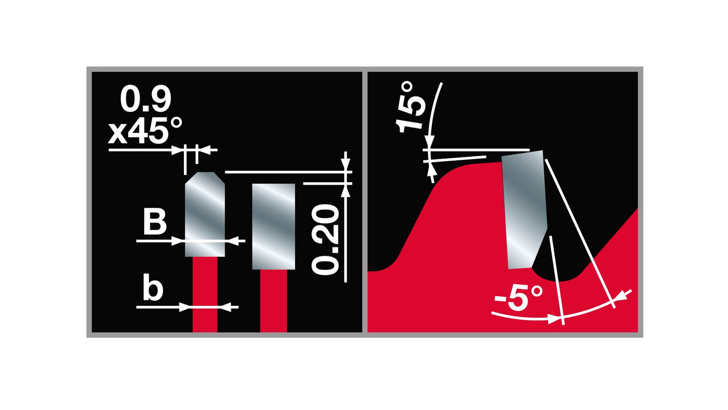 - Negative hook angle prevents material deflection and ensures a smooth cut.