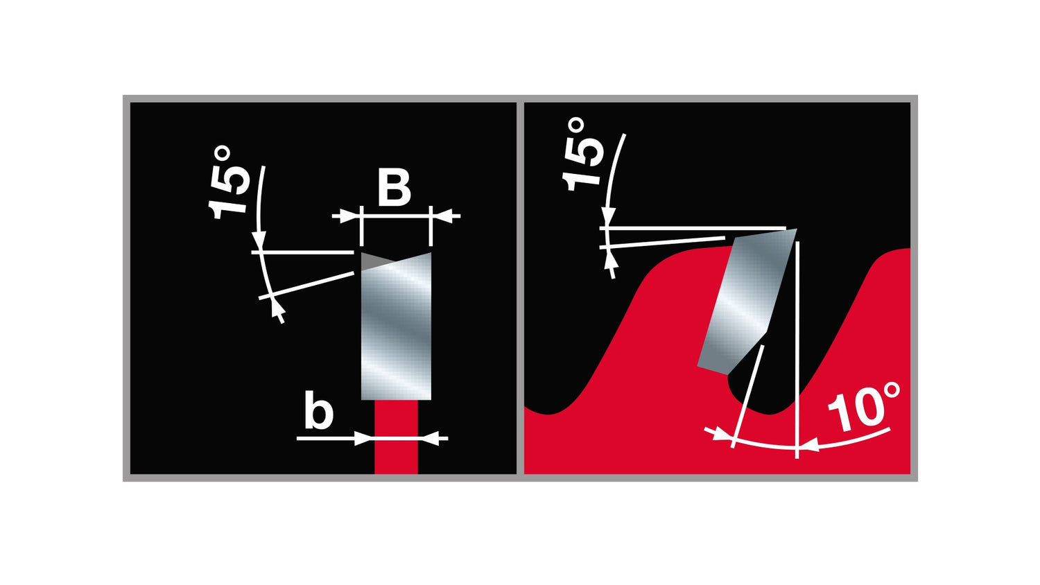 - ATB tooth geometry provides a balance of ripping and crosscutting capabilities.