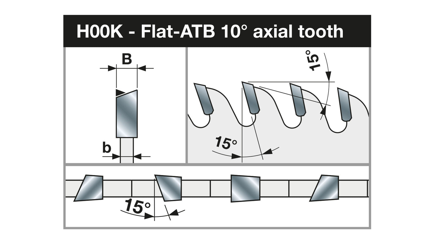 - Special axial angle tooth design ensures clean, mirror-smooth finishes with virtually no splintering.