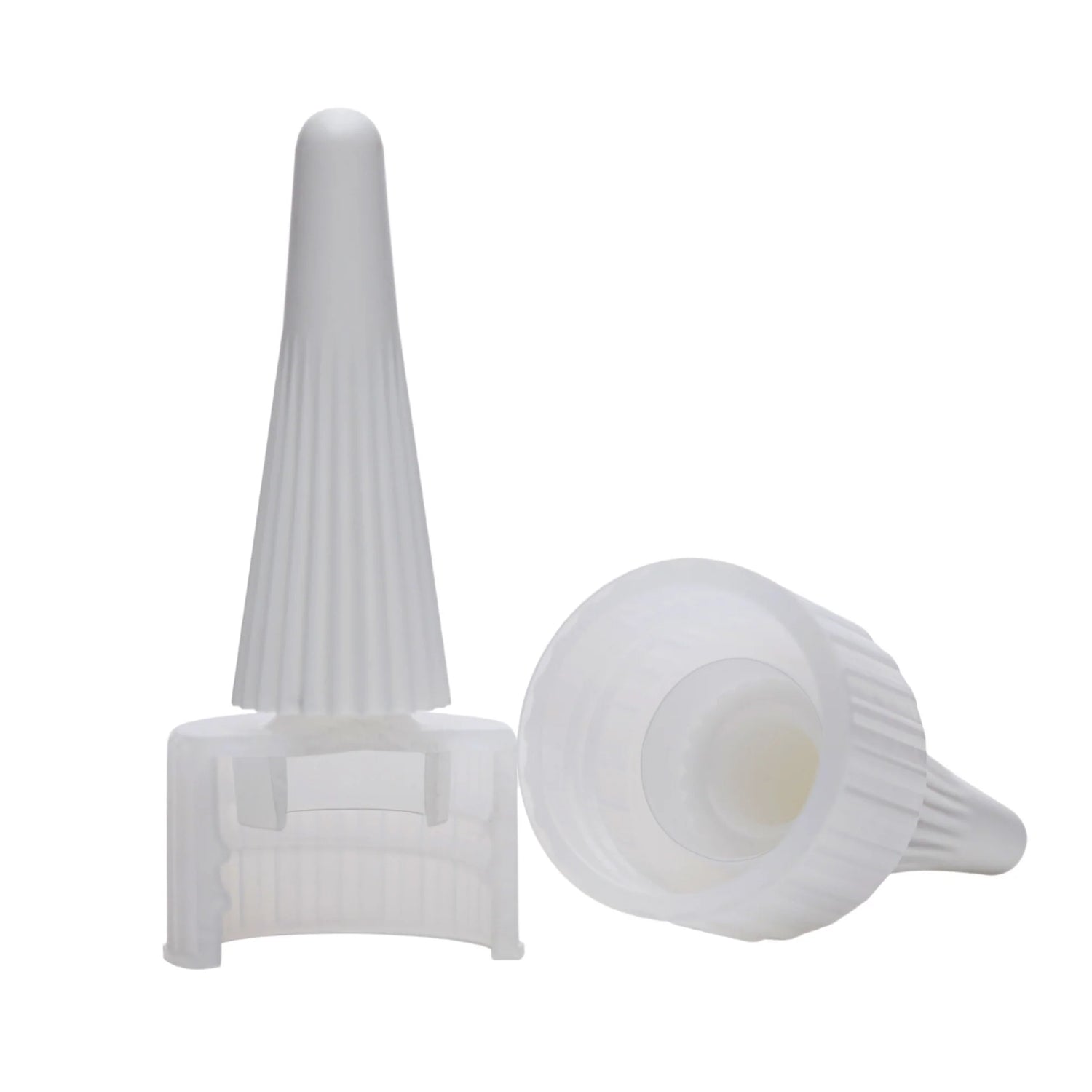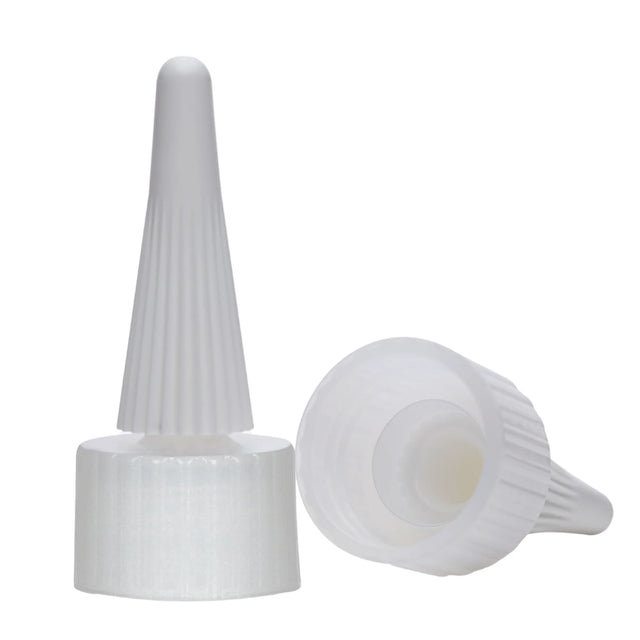 - Pull off the white ribbed over-cap to reveal the clear applicator nozzle.