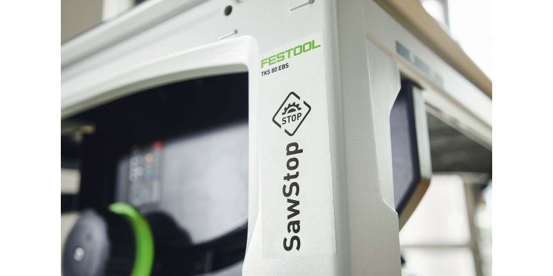 If the saw blade comes into contact with the users skin, it is stopped within 5 milliseconds and disappears into the work surface.