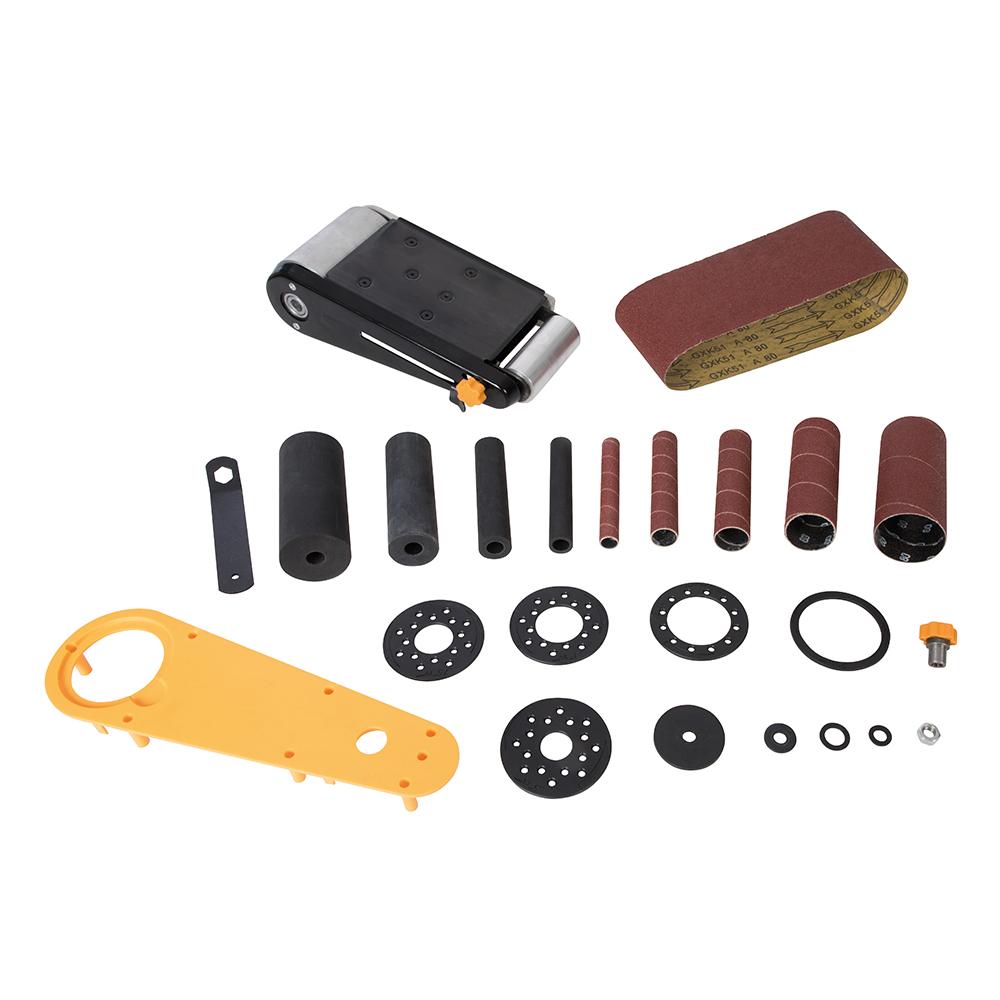 · Comprehensive spindle kit – Includes sanding sleeves in 13mm, 19mm, 26mm, 38mm, and 51mm with matching inserts and drum washers.
