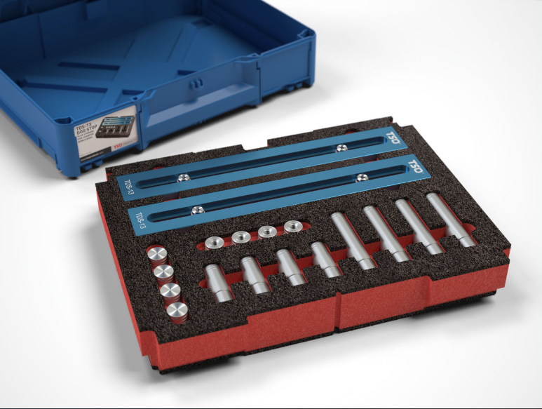 Protect your TDS-13 Dog Stops and provide ample storage space for our family of Chamfer Dogs with this CNC-cut custom foam insert, fitting Systainer3 M 112 and T-LOC Systainer enclosures. Kaizen foam not only protects your precision tools but can also be easily further customized with careful use of a utility blade, or for a more professional result, using the available Kaizen foam hot knife.